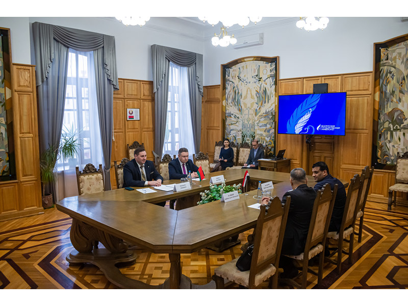 The delegation of the Embassy of the Republic of Iraq in the Russian Federation visited BSU on 9 November. It was headed by the Attache for Culture and Education Al-Obaidi Nadir Jassim Mohammed. A meeting was held with the Vice-Rector for Academic Affairs and Internationalization of Education Konstantin Kozadaev. Also participating in the talks were Deputy Attache Al-Haideri Basim Hassan Hrebit and Deputy Head of the International Relations Department of BSU Vladimir Galynsky.