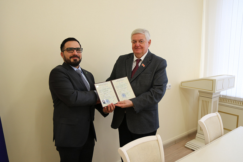 On October 25, a ceremonial presentation of a research diploma to a graduate of the university’s graduate school, MICHEL ALAM, took place.