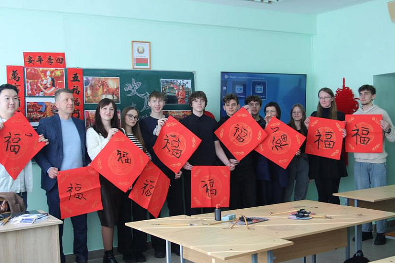 In addition to culinary experiments, guests were introduced to the fine art of calligraphy. Under the guidance of Chinese students, everyone learned to write the character "FU" (happiness and blessing) and create lacy window decorations symbolizing "Double Happiness." Everyone was able to take home a piece of the holiday.