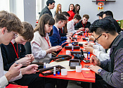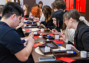 During a workshop, Chinese and Belarusian students worked together to create traditional hongbao envelopes. They planned to give them to loved ones and friends or keep them as souvenirs.