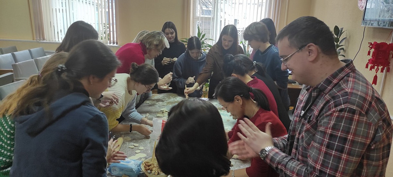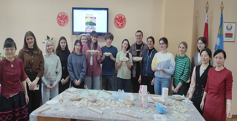 On 25 January, a fascinating workshop on Chinese dumpling making was held in dormitory No. 3 of Mogilev State A.Kuleshov University. Our Chinese colleagues Wang Xiaomei, director of the Confucius Institute on the Chinese side, professors Zhang Rui and Chang Likun, master degree student Yan Jing, shared their knowledge and secrets of preparing dough and various fillings for perfect dumplings. The participants of the event, who were the students of the Faculty of Foreign Languages of Mogilev State A.Kuleshov University, learnt that dumplings symbolize financial prosperity, well-being, good luck, and it is an obligatory dish of the New Year's table and family celebrations.
