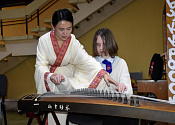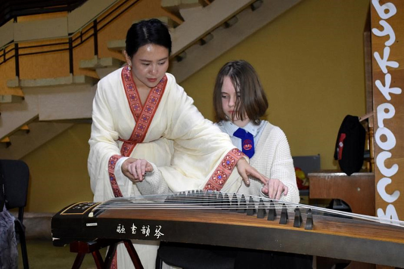 Students from Francisk Skorina Gomel State University, who are attending the "Hieroglyph" courses, performed Chinese folk tales and poetry. A calligraphy performance accompanied by a guzheng playing was presented by the teachers from the Confucius Institute, Sun Xiao and Sun Jota. The audience was particularly impressed by Olga Statcenko's rendition of the song "Bright Light," and Varvara Shilova intrigued the audience with her performance of the folk song "Valenki" in both Chinese and Russian. To conclude the concert, the Chinese language teachers from the Confucius Institute performed the popular Chinese song "Katyusha" in both languages.