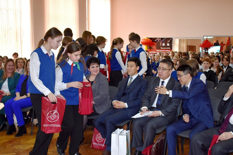 The event dedicated to the International Chinese Language Day, organized by the Confucius Institute at Francisk Skorina Gomel State University, took place at Gymnasium No. 46 named after Blaise Pascal in Gomel, where optional Chinese language classes have been held during the current academic year.