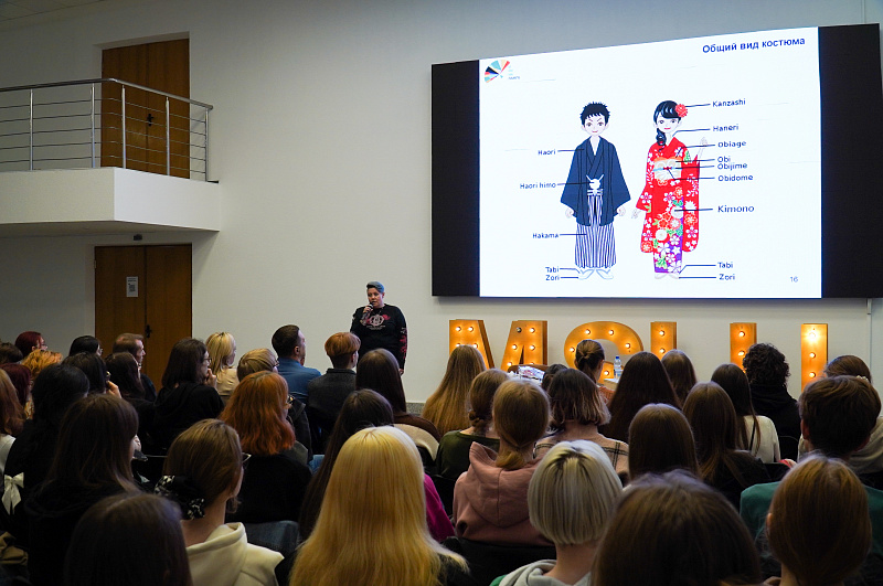 During the meeting, Irina Yuryevna introduced the audience to the main components of traditional Japanese clothing, placing special emphasis on the sacred meaning of ornaments and belts.