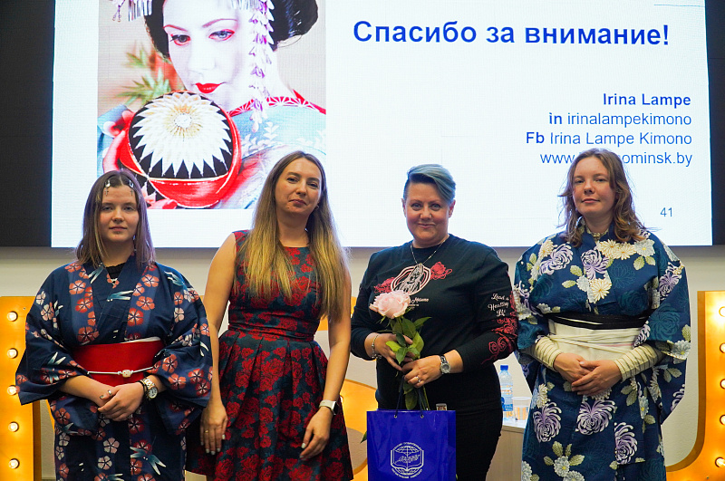 Participants of the event received a unique opportunity to immerse themselves in the mysterious Japanese culture, as well as learn from the experience and knowledge of a professional, during a conversation with Irina Yuryevna Lampe. Irina Yuryevna is a graduate of the Minsk State Linguistic University, an art critic, a Japanese specialist and the only kimono specialist in the Republic of Belarus.
