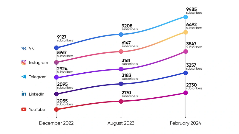 The ranking reflects the development of universities' social networks: the number of subscribers, content frequency, and user activity. In 2023, Polotsk University's social information resources demonstrated excellent dynamics thanks to the well-coordinated work of all employees, students, event organizers, partners, government agencies and the department of public relations.