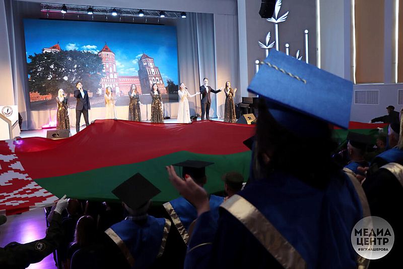The ceremony honoring newcomers followed its best traditions. The official part of the event ended with the solemn recitation of the Freshman Oath and the performance of the student anthem “Gaudeamus”. Then, the original concept of the theatrical production and concert program immersed the audience into the world of values of the Belarusian people and revealed the spiritual wealth of the nation.