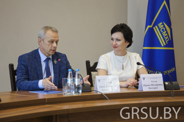The meeting was opened by Iryna Kiturka, Rector of Yanka Kupala State University of Grodno, who welcomed Andrey Alexandrov. During the opening of the meeting, wishes for successful and productive cooperation between the two prestigious universities were expressed.