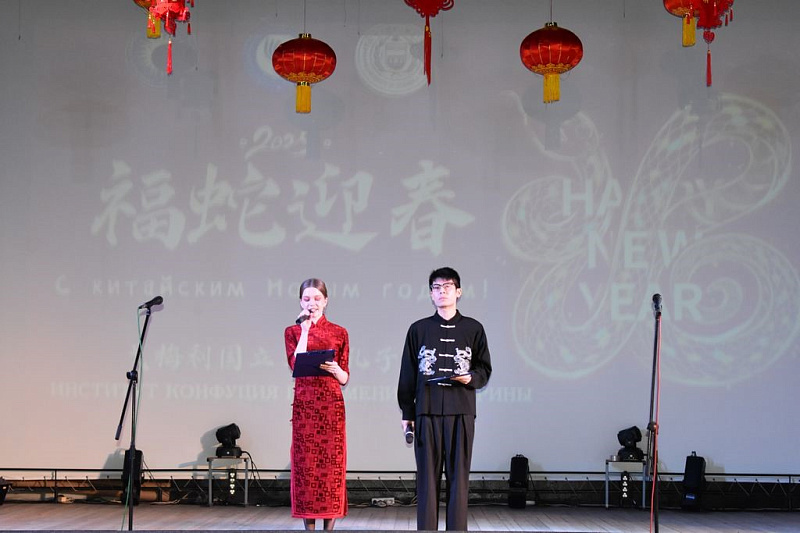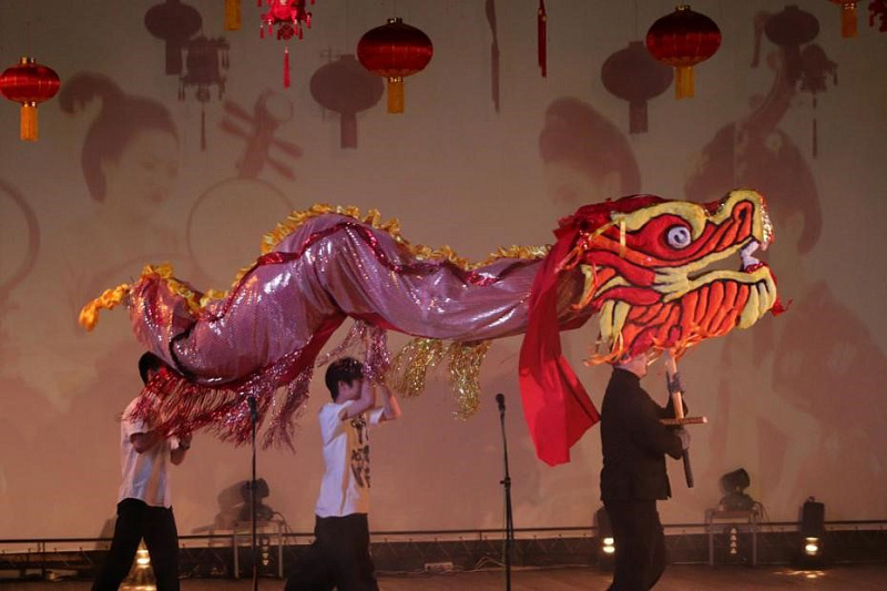 On February 12, 2025, Francysk Skoryna University hosted an amazing concerto dedicated to the Chinese New Year. The event, organized by the Confucius Institute, brought together students, teachers, students of Chinese language courses, as well as city residents to immerse themselves in the atmosphere of a traditional Chinese holiday. The audience was able to enjoy traditional Chinese and other performances that harmoniously combined Belarusian and Chinese cultural elements. Particular attention was drawn to the dragon dance performed by Chinese language teachers, which became a bright opening of the holiday. No less impressive was the dance of the Han Dynasty, this ancient dance, more than two thousand years old, took the audience to the era of greatness and wisdom of Chinese history. The concert ended with a performance by Chinese language teachers, who sang the song "Love Each Other". This final act was a symbol of friendship and mutual understanding between the cultures of Belarus and China.