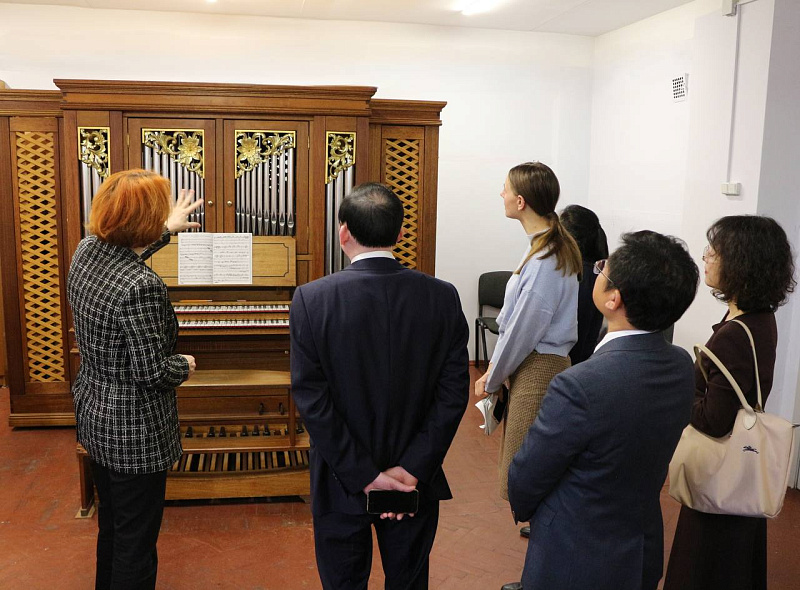 As part of the visit, a tour of the Academy's educational building was organized for the Chinese delegation. The members of the delegation were able to familiarize themselves with the organization of the educational process and attend student classes, which allowed them to gain a deeper understanding of the atmosphere and spirit of academic music education in Belarus.