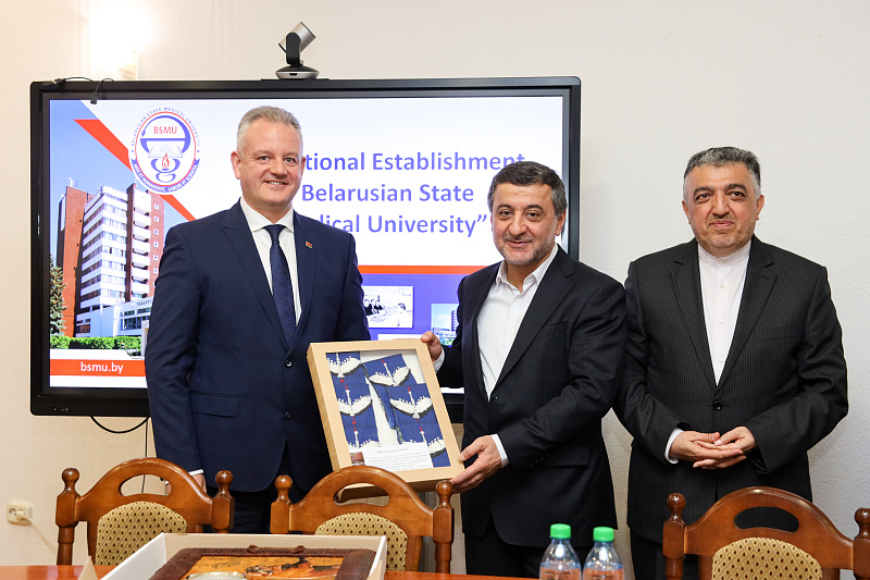 The Rector thanked the Ambassador Extraordinary and Plenipotentiary of the Islamic Republic of Iran to the Republic of Belarus for cooperation and noted that Alireza Sanei, despite his busy schedule, finds time to discuss pressing issues of mutual interest with the leadership of Belarusian State Medical University.