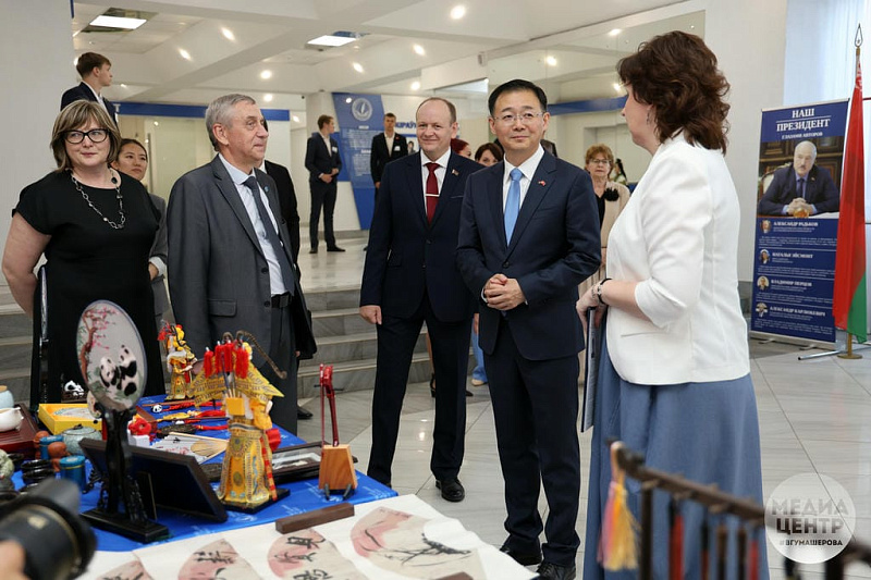 Mr. Zhang Wenchuan also got acquainted with the final works of Chinese master's students and students of the art and graphic department. As a lasting memory, Masherov students presented Mr. Ambassador with his portrait, made by the famous artist, teacher of the Department of Fine Arts Sergei Sotnikov. Belarusian students also did not miss the opportunity to demonstrate their success in mastering the Chinese language and culture.
