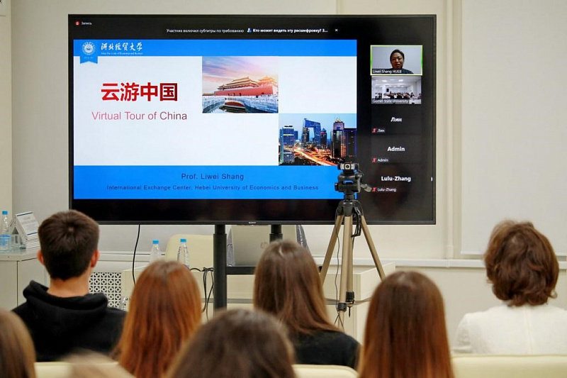 Shang Liwei, a professor from China hosted an online conference at the Francysk Skoryna State University. Shang has multiple responsibilities. He is the head of the Department of international relations of the Heibei economic and trade university, he is the member of a political advisory council of the Heibei province as well as member of the People's Society for Friendship with Foreign Countries of Hebei Province and Executive Director of the Association of Students Graduated from Universities in Europe and the United States of Hebei Province. The topic of his conference is "Online travel across China".