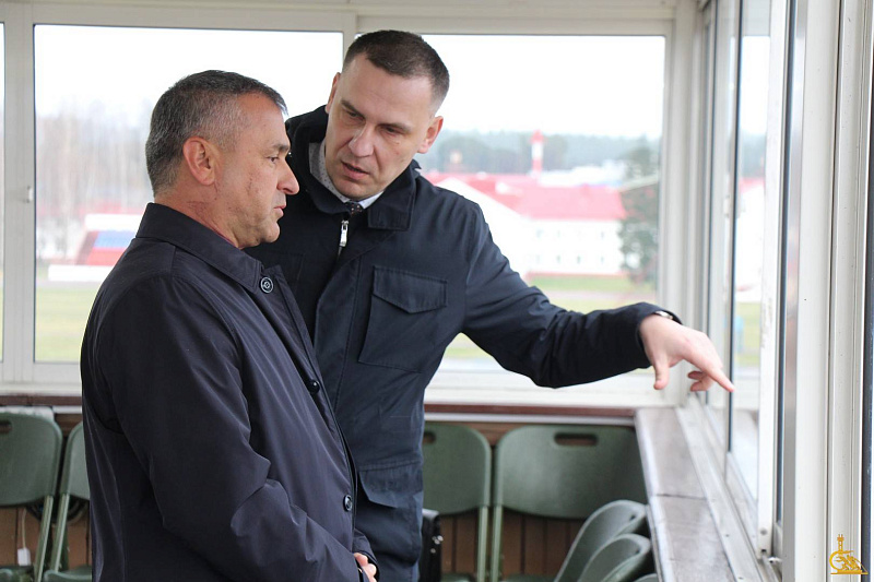 На территорию филиала «Институт переподготовки и повышения квалификации Университета гражданской защиты» гость прибыл на вертолёте Ми-8. Совместно с ним на борту находился первый заместитель Министра по чрезвычайным ситуациям Республики Беларусь Александр Худолеев.