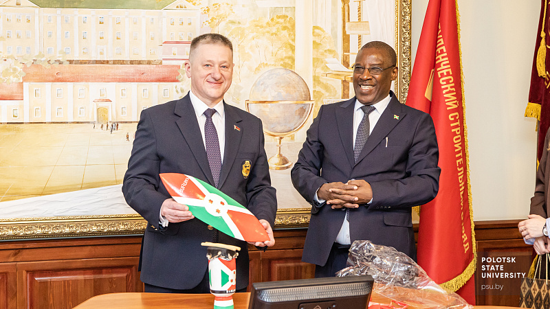 В своем выступлении почетный гость выделил перспективные направления сотрудничества в сфере образования Республики Бурунди с Беларусью и Полоцким университетом, в частности. В завершении программы первый проректор Полоцкого университета Оксана Валерьевна Голубева вручила Послу Бурунди уникальный сувенир с белорусским орнаментом, после чего Посол оставил свою подпись в Книге почетных гостей университета.