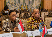 The Deputy Chief of Mission of the Republic of Indonesia to the Russian Federation and the Republic of Belarus Azis Nurwahyudi met with the BSU Rector Andrei Korol. The meeting was also attended by Konstantin Kozadaev, the Vice-rector of BSU for academic affairs and internationalization of education, Alexander Zhuk, the Head of the Department of Education and Science, Adi Priyanto, the Minister Counsellor, Adi Nuryanto, Attache of Education.