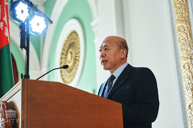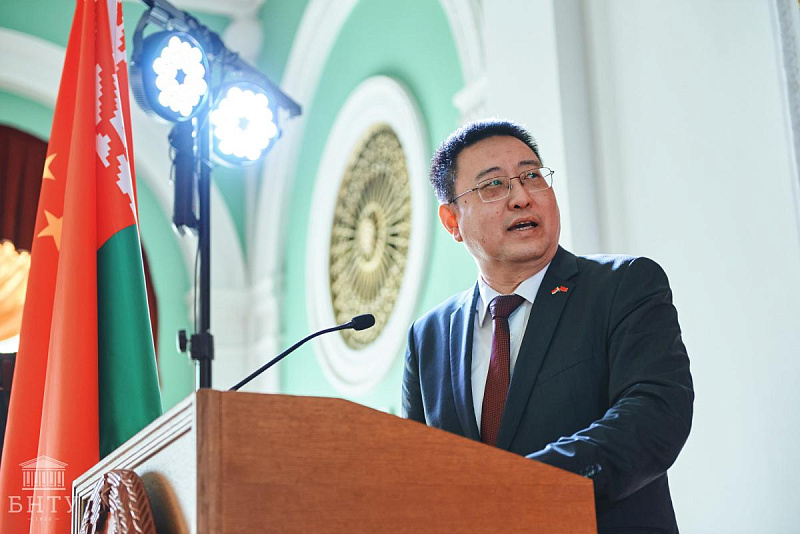 - Good afternoon, dear guests! I am very glad to visit the Belarusian National Technical University in such a warm spring time and take part in today's solemn event. Taking this opportunity, on behalf of the Embassy of the People's Republic of China in the Republic of Belarus, I would like to express my sincere gratitude to the rector, teachers, staff and students who assisted in organizing the festival.