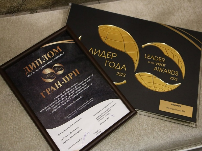 The School of Business of BSU was awarded the Grand Prix in the category «Education» of the VII International Business Award «Leader of the Year–2022». This prize was awarded for the high level of training of specialists, the introduction of modern educational technologies, the development of international cooperation and an effective management culture.