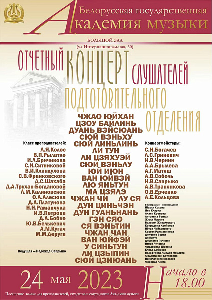May 24, 2023 in the Great Hall of the Belarusian State Academy of Music, the reporting concert of the students of the preparatory department was held.