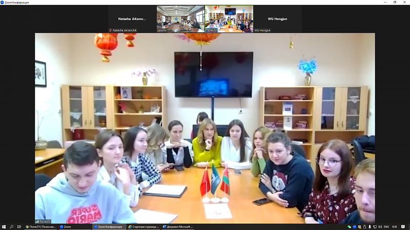 The event was held at the Center for Belarusian-Chinese Intercultural Communications at the Polessky State University. The moderator was Anna Andreevna Mankevich, lecturer of the Intercultural Communications Department. Mr. Andy Yu, lecturer of the Faculty of Foreign Languages of the University of Yantai, moderated the event.