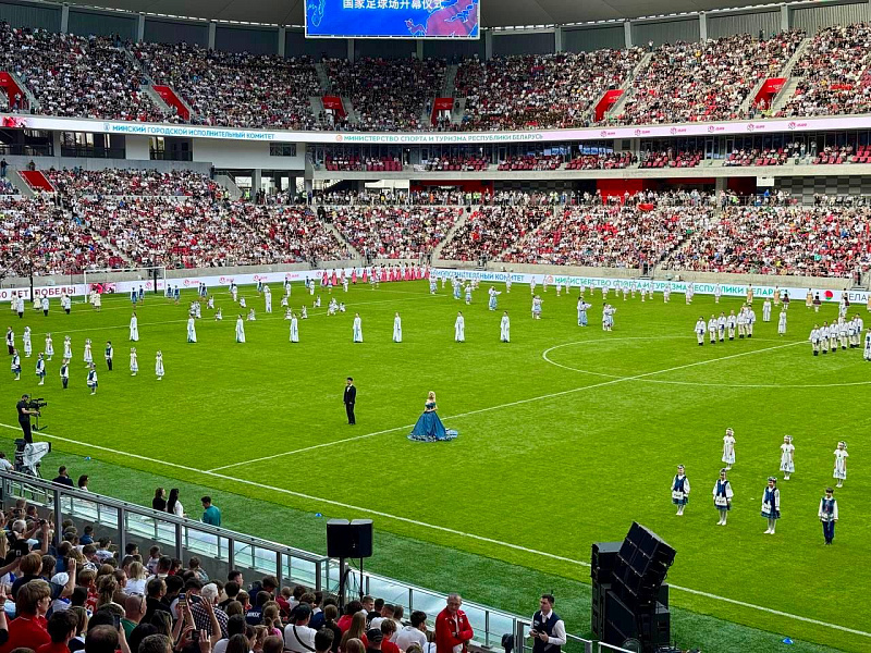 On June 7, students of the Belarusian State Academy of Music from among the citizens of the People's Republic of China, together with senior lecturer of the Department of Singing and Musical and Theatrical Arts, S.A. Belaya, took part in the grand opening of the new National Football Stadium.