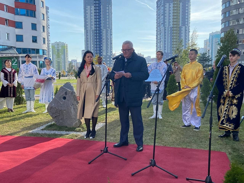 The representatives of different countries – former students of Belarusian universities and management of the Ministry of Education laid a capsule at the installation site of “Student’s brotherhood” composition.