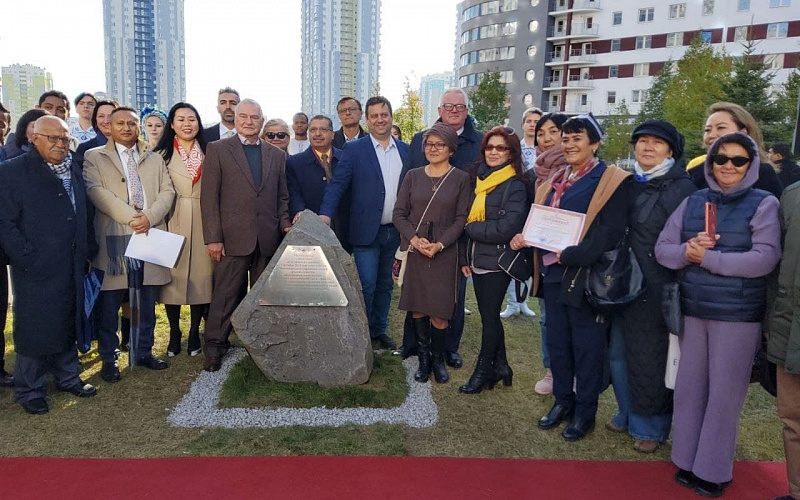 The representatives of different countries – former students of Belarusian universities and management of the Ministry of Education laid a capsule at the installation site in the student’s village “Student’s brotherhood” – a symbol of unity of the student’s youth. The composition will be done in the form of a flower with five leaves, representing five continents and in the middle of it – Belarus, the country that unified the students.