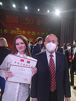 Vitebsk State University students of the faculty of Humanities and language communications (HLC) together with students of the Lyceum of the VSU were given "Chinese Ambassador Awards" 2021-2022 for high achievements in chinese language learning. This award can not be presented to anyone. Thus, this award will be undoubtedly given only to those university students and schoolchidren who definetely put a tremendous effort to master Chinese. This award is also presented to exemplary education facilities for the best training of their students. But, because of COVID-19 pandemia the 2021 and 2022 ceremonies had to be united in one.