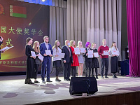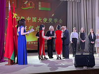 During the ceremony the Ambassador Extraordinary and Plenipotentiary of the People's Republic of China to the Republic of Belarus Xe Xiaoyung handed diplomas to the winners. Among the chosen were a second year student of the HLC faculty Makarova Alexandra Olegovna, she studies "Romano-Germanic philology". She was joined by Nikolaenko Marat Olegovich who is a graduate of the HLC faculty. Also, a 10"M" class student of the VSU Lyceum Ladytko Miroslava Ivanovna was not lagging behind. This year in total the award was presented to 80 Bealrusian students from 12 institutions of higher learning, 16 schools, gymnasiums and lyceums for outstanding knowledge of chinese language, culture and traditions shown during the Republican quiz and other contests.