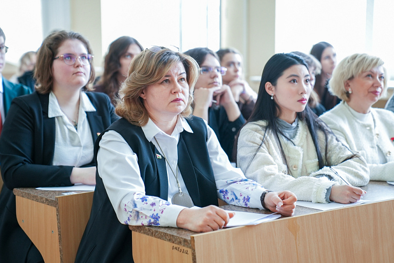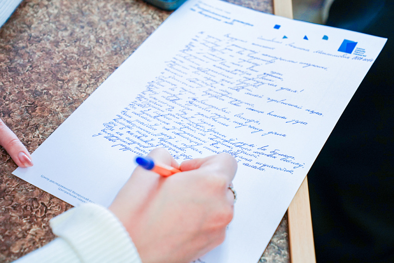 This year's National Dictation was dedicated to the Year of the Belarusian Woman. The text for the dictation was Ales Zvonak's poem "Belarusian Women." Deans, deputy deans of faculties, faculty, students, and graduate students of the university participated in the writing process.