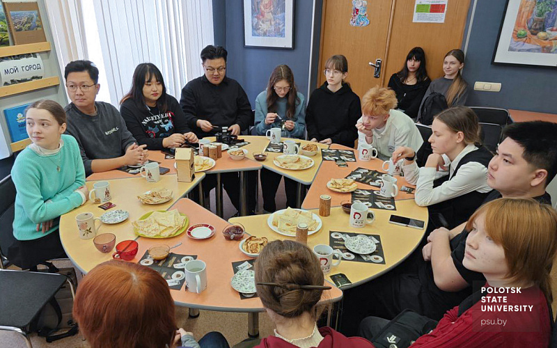 Following the workshop, guests were introduced to the traditions of one of the most cherished Belarusian folk holidays – Maslenitsa. In the welcoming library, Irina Shupenko provided insights into the customs and traditions surrounding the holiday. The Belarusian students prepared pancakes, which symbolize Maslenitsa.