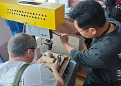 This time, the meeting was held in a new and unusual format. At the beginning of the event, the university students participated in a woodworking workshop. The teacher for labor and informatics, Alexey Kachan, provided a concise safety briefing on the operation of the machines. Afterward, the students eagerly started crafting memorable items.