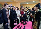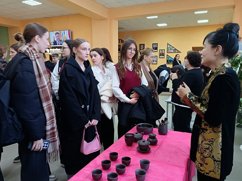 Wang Xiaomei, director of the Confucius Institute from the Chinese side, spoke about the rules of tea ceremony, the dishes and accessories needed for this ceremony and the varieties of tea. Everyone could taste Chinese flower tea.