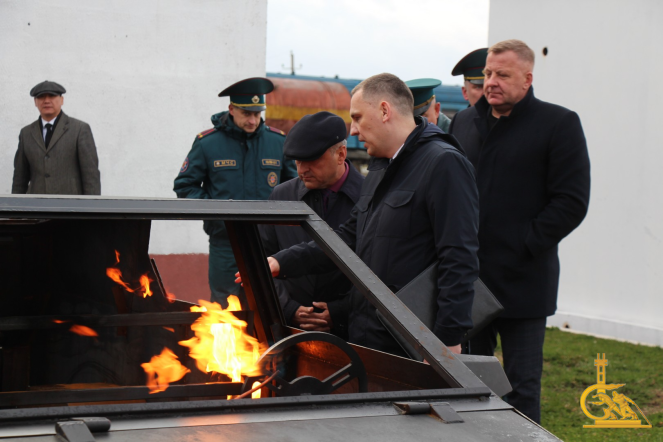 На территорию филиала «Институт переподготовки и повышения квалификации Университета гражданской защиты» гость прибыл на вертолёте Ми-8. Совместно с ним на борту находился первый заместитель Министра по чрезвычайным ситуациям Республики Беларусь Александр Худолеев.