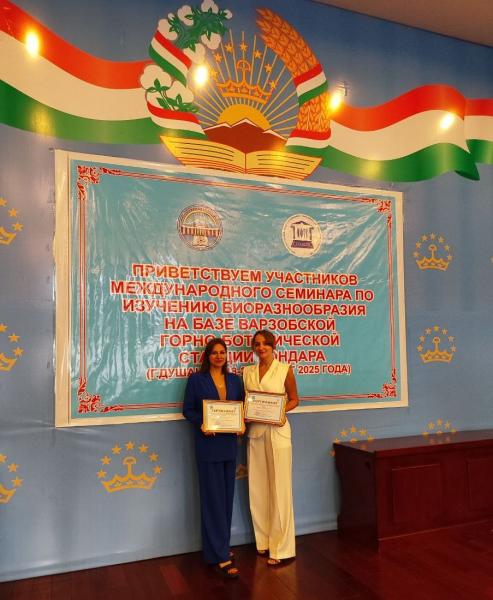 С 18 по 25 августа 2025г. на базе Варзобской горно-ботанической станции (ВГБС) г. Душанбе, Республика Таджикистан состоялся ежегодный Международный семинар по изучению биоразнообразия. В мероприятии приняли участие представители из Азербайджанской Республики, Республики Беларусь, Республики Казахстан, Кыргызской Республики, Российской Федерации, Республики Таджикистан и Республики Узбекистан. В состав белорусской делегации от УО «Полесский государственный университет» вошли заведующий кафедрой биотехнологии, кандидат биологических наук, доцент Воробьева Мария Михайловна и заместитель декана по идеологической и воспитательной работе биотехнологического факультета Приловская Екатерина Игоревна.