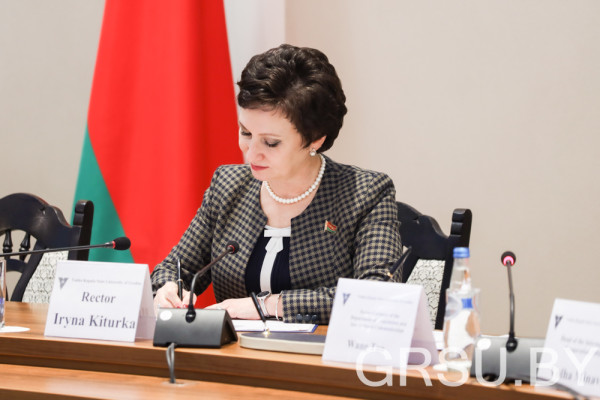 С приветственным словом к китайским коллегам обратилась ректор Купаловского университета Ирина Федоровна. В своей речи она отметила готовность Гродненского государственного университета имени Янки Купалы активно взаимодействовать по достигнутым ранее договоренностям. Среди них – обучение выпускников Ланьчжоуского института бизнеса и технологии в магистратуре ГрГУ имени Янки Купалы, а также возможность дальнейшего обучения китайских студентов в аспирантуре, реализация совместных образовательных программ в области технологий и бизнеса, юриспруденции, филологии и искусства, обмен сотрудниками для прохождения стажировок и чтения лекций и участие сотрудников и студентов в научно-образовательных и культурных мероприятиях ГрГУ имени Янки Купалы.