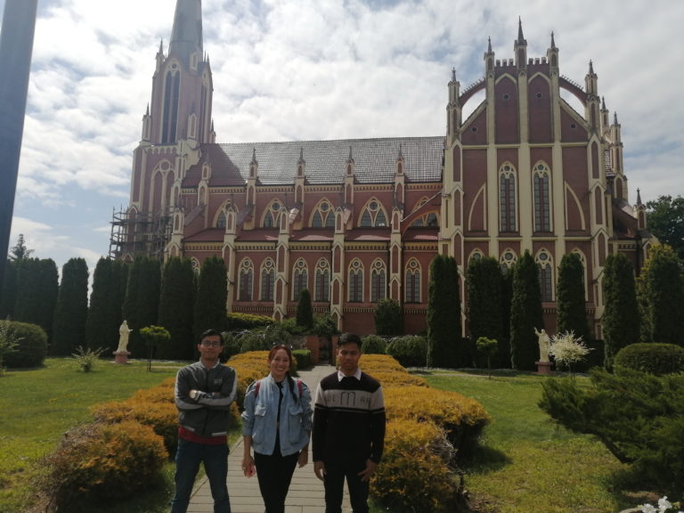 16 июня иностранные студенты подготовительного отделения Белорусского государственного технологического университета из Мьянмы и Эквадора побывали на экскурсии «Гервяты — Михалишки — Голубые озера».