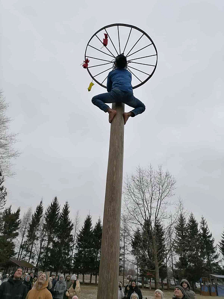 Студенты осмотрели с экскурсоводом музейный комплекс, а затем приняли участие в масленичных развлечениях: боях подушками, метании деревянной дубины на расстояние, покорении масленичного столба, мастер-классе по историческому фехтованию «Воинское ремесло».