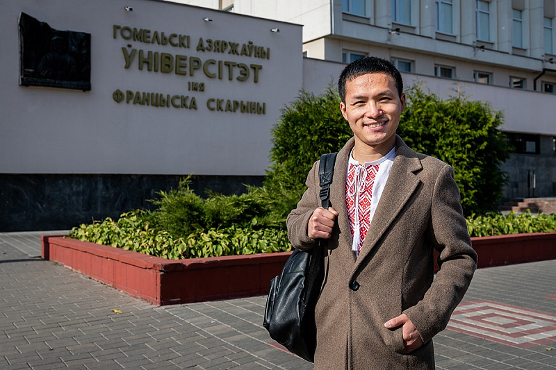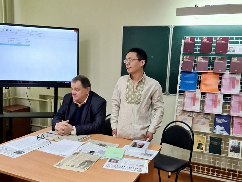4-5 октября на кафедре белорусской литературы филологического факультета ГГУ имени Ф.Скорины прошли Международные научные чтения «Региональные, национальные и общечеловеческие в славянской литературе», посвященные памяти народного писателя Беларуси, академика Ивана Науменко. В чтениях выступил с докладом выпускник аспирантуры ГГУ имени Ф.Скорины, гражданин КНР Цзи Хэхэ, который в сентябре 2022 года успешно защитил диссертацию на соискание ученой степени кандидата филологических наук по теме «Проблемы идентификации и самоидентификации автора и героев в творчестве Владимира Кигна-Дедлова» (научный руководитель - заведующий кафедрой белорусской литературы, доктор филологических наук И.Штейнер).