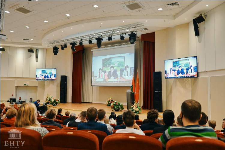 Сегодня, 20 октября, в конференц-зале гостиницы «Беларусь» стартовал форум «Беларусь – Китай: мост для инноваций», организатором которого выступил Научно-технологический парк БНТУ «Политехник» при поддержке инновационного фонда Минского городского исполнительного комитета, Белорусско-Китайского технопарка в г. Чанчунь и Шанхайского университета. Основной целью мероприятия стало расширение научно-технического и инновационно-производственного сотрудничества между организациями Минска и городов-побратимов КНР (Шанхай, Чанчунь). Участниками форума являются около 80 представителей 28 организаций Беларуси и Китая. В торжественном открытии приняли участие заместитель председателя Минского городского исполнительного комитета Надежда Анатольевна Лазаревич, проректор по учебной работе БНТУ Анна Петровна Куракова, генеральный директор китайско-белорусского совместного закрытого акционерного общества «Компания по развитию индустриального парка» Ли Чжунхань. Модератором выступил первый заместитель генерального директора Научно-технологического парка БНТУ «Политехник» Максим Васильевич Журкевич. С китайской стороны онлайн подключились генеральный директор Белорусско-Китайского технопарка в городе Чанчунь Ли Юнпин, заместитель директора Научно-технологического парка Шанхайского университета Лу Сяолинь, директор Института Конфуция по науке и технике БНТУ с китайской стороны Ли Вэньсюэ.