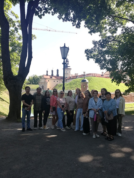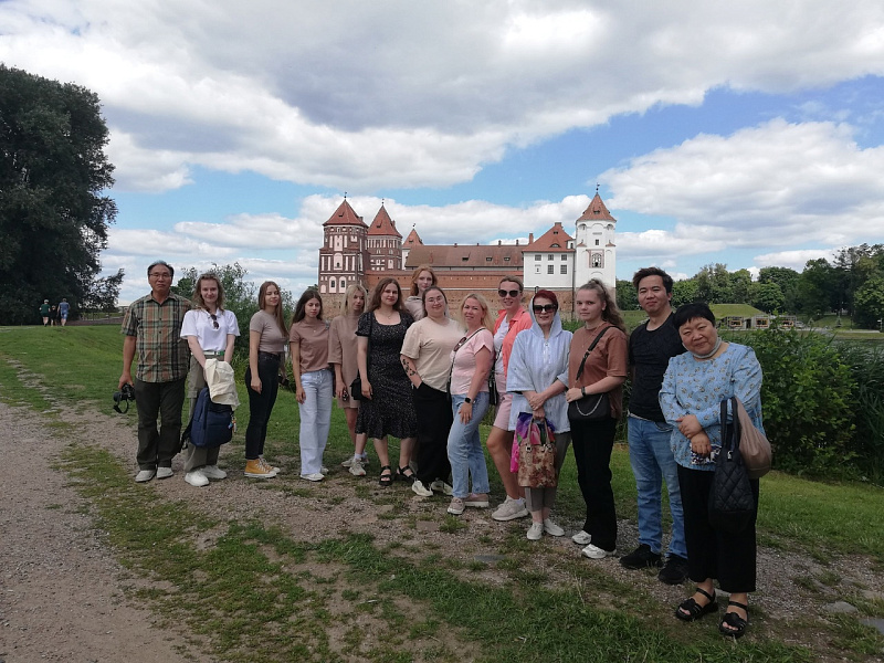 8 июля 2023 участники Летней лингвистической школы БарГУ из числа преподавателей и студентов Филиала Северного (Арктического) федерального университета имени М.В. Ломоносова в г. Северодвинске (Архангельская область, Российская Федерация), а также работники специализированного кабинета «Класс Конфуция» БарГУ из числа ППС партнерского Северо-Западного университета лесного и сельского хозяйства (Китайская Народная Республика) посетили Национальный историко-культурный музей-заповедник «Несвиж» и Замково-парковый комплекс «Мир».
