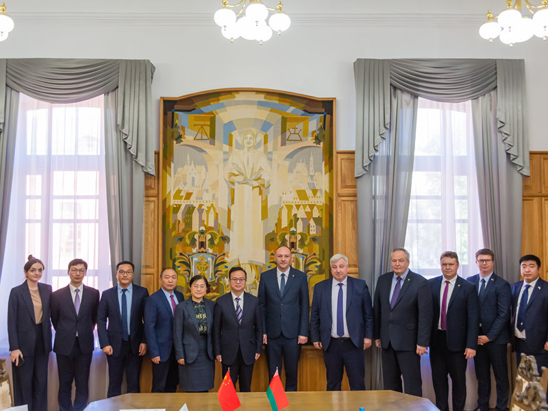 Дмитрий Курлович ознакомил высоких гостей с образовательным, научным и производственным потенциалом БГУ. В свою очередь Чжу Чаовэй рассказал об истории и современности СУИЯ. В ходе переговоров стороны обсудили возможные формы реализации эффективного и взаимовыгодного партнерства в области юриспруденции, регионоведения, международных отношений, социологии, лингвистики и др. В частности, речь шла об обмене студентами и преподавателями, подготовке совместных образовательных и научных проектов и мероприятий, чтении гостевых лекций, разработке совместных образовательных программ и др.