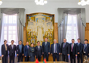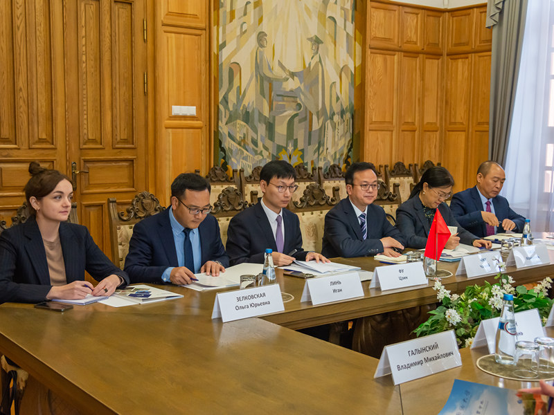 Предложения по сотрудничеству с Сычуаньским университетом иностранных языков (СУИЯ) обсудили сегодня, 13 октября, в рамках официального визита китайской делегации в ведущий белорусский вуз. Участниками встречи со стороны БГУ стали первый проректор БГУ Дмитрий Курлович, директор Информационно-образовательного центра БГУ в Китае Ван Яотянь, заместитель начальника управления международных связей Владимир Галынский, деканы исторического и филологического факультетов Александр Кохановский и Сергей Важник соответственно. Китайский вуз представили первый проректор Чжу Чаовэй, директор Института русского языка Сюй Маньлинь, директор библиотеки и Центра изучения Беларуси Ян Цзюнь, директор Института юриспруденции и социологии Линь Иган и др.