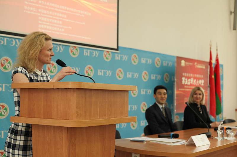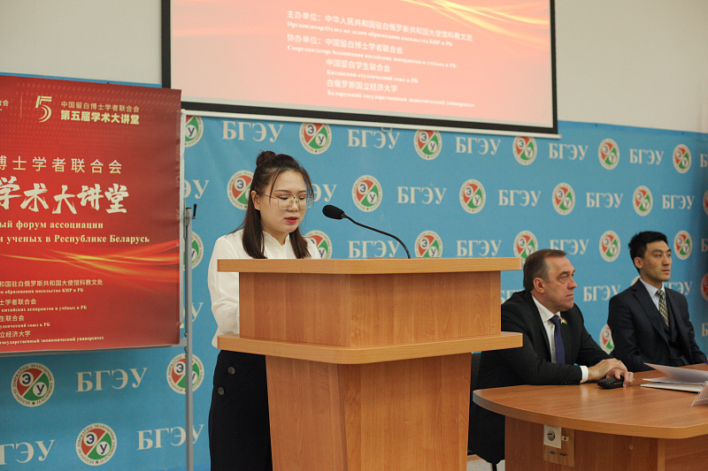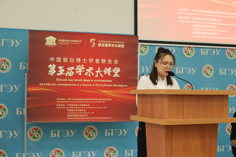 16 мая председатель Ассоциации Чжан Хайжун поприветствовала гостей мероприятия и представила состав президиума: ректора Белорусского государственного экономического университета Алексея ЕГОРОВА, ответственное лицо отдела по делам образования Посольства КНР в Республике Беларусь господина Цзя ВЭЙ, проректора по учебной работе Ольгу МОРОЗЕВИЧ, начальника учебно-методического управления по координации обучения иностранных граждан БГЭУ Елену КОЛЯДУ, а также авторов научных работ, обучающихся в Беларуси китайских студентов, магистрантов, аспирантов и приглашенных ученых.