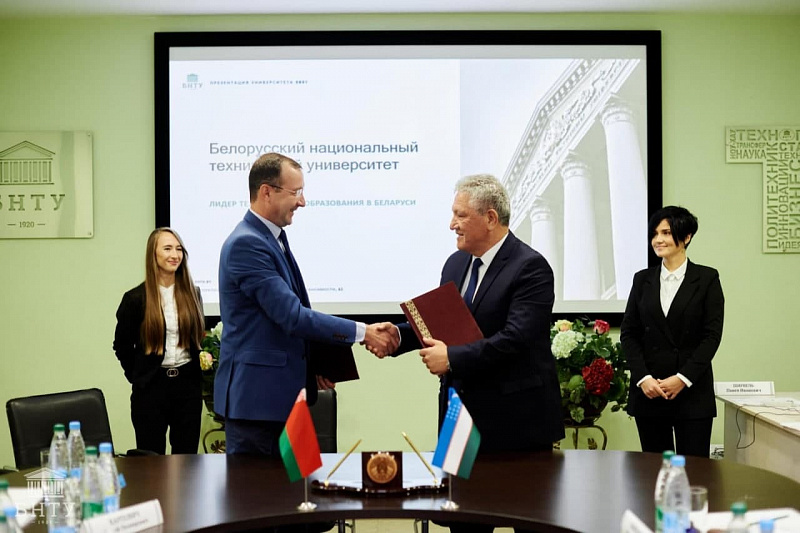 From 20 to 23 September 2021, Belarusian National Technical University welcomed delegations from Namangan Engineering and Technological Institute (NETI) lead by chancellor Odiljon Mamatkarimov and from Namangan Engineering-Construction Institute lead by chancellor Sharibboy Ergashev. The purpose of the visit was to get acquainted with the educational, methodological and research base of BNTU, to conduct negotiations on the development of cooperation.