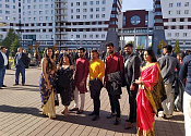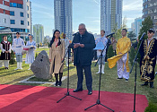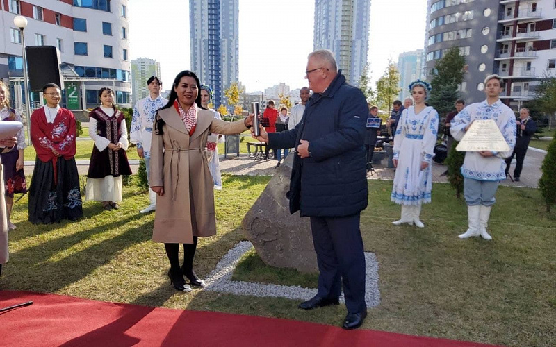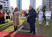 The representatives of different countries – former students of Belarusian universities and management of the Ministry of Education laid a capsule at the installation site in the student’s village “Student’s brotherhood” – a symbol of unity of the student’s youth. The composition will be done in the form of a flower with five leaves, representing five continents and in the middle of it – Belarus, the country that unified the students.