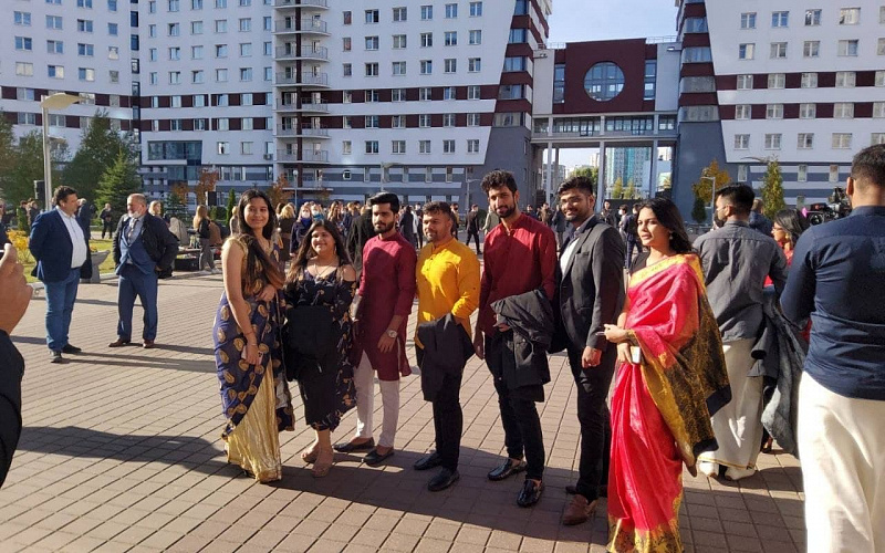 The representatives of different countries – former students of Belarusian universities and management of the Ministry of Education laid a capsule at the installation site of “Student’s brotherhood” composition.